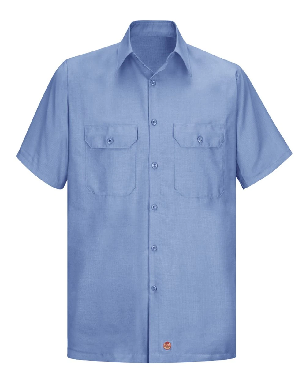 Two button-through flapped pockets with angled bartacks and sewn-down pencil stall on left pocket