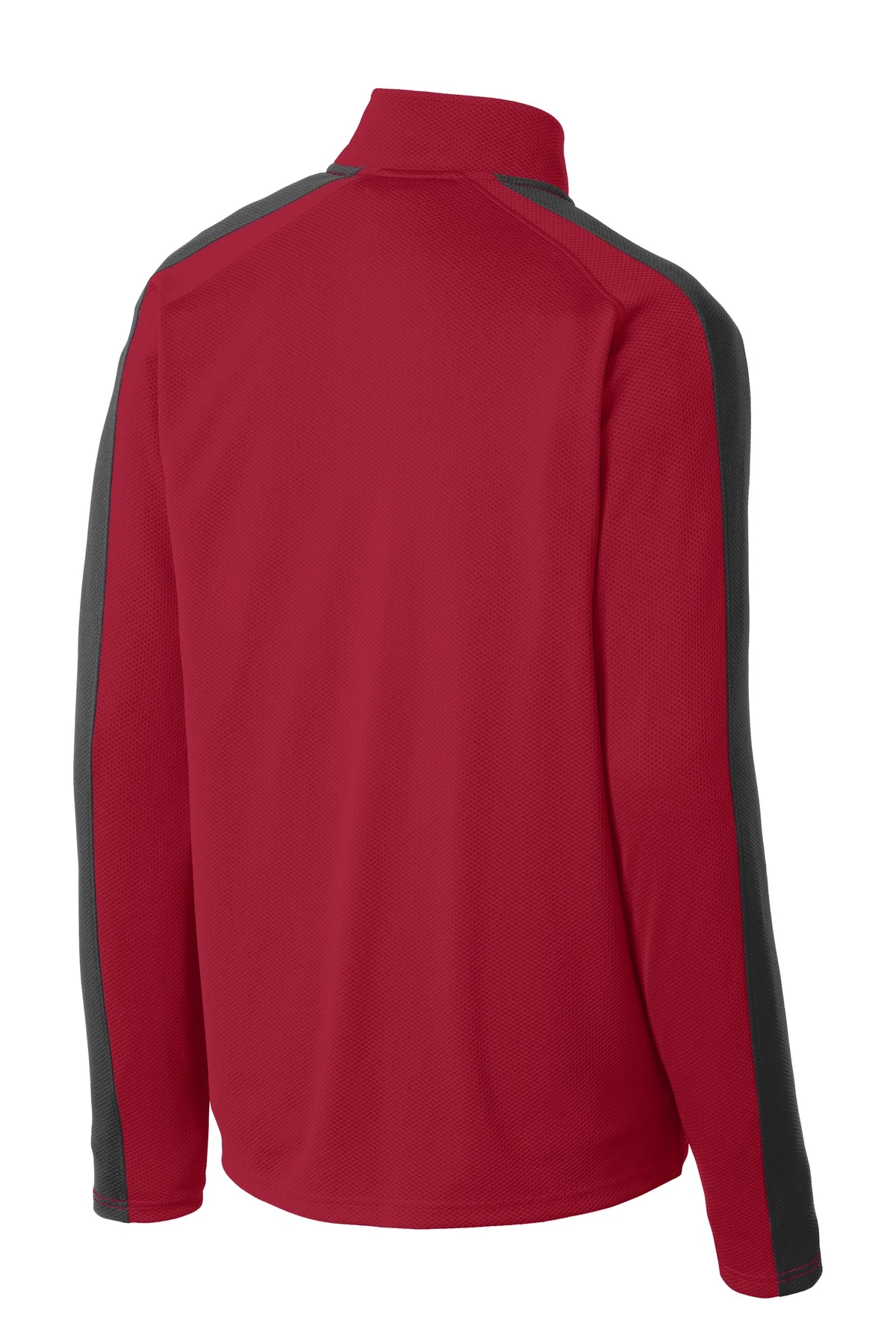 Contrast sleeve stripes and texture give this moisture-wicking pullover an unrivaled look.