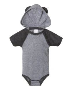 Fine Jersey Infant Short Sleeve Raglan Bodysuit With Hood & Ears