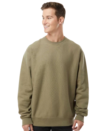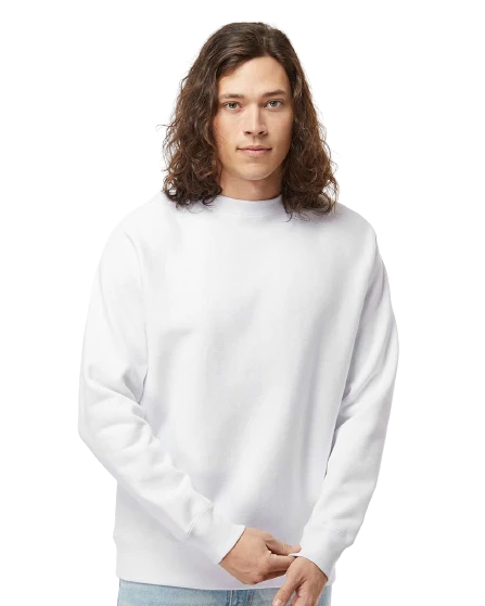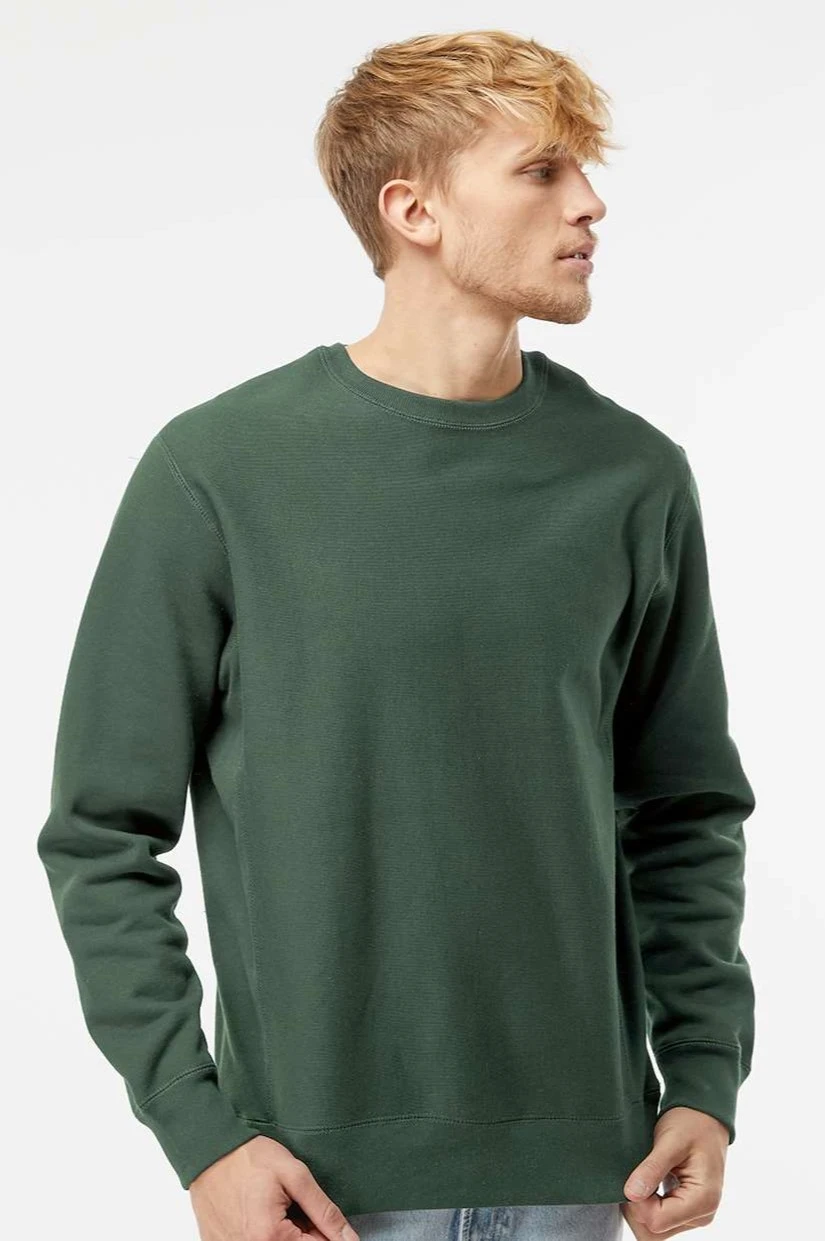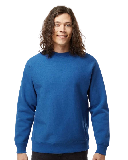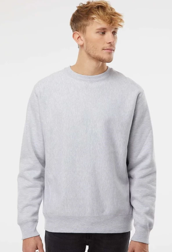 13.5 oz., 70% cotton/ 30% polyester, 100% cotton face yarns on solid colors