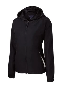 Ladies Heather Colorblock Raglan Hooded Wind Jacket